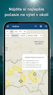 Vizuálne nástroje posúvajú vaše poznatky o počasí na novú úroveň. Preskúmajte satelitnú mapu s pozorovanou oblačnosťou pre rozsiahle územia (Severná a Stredná Amerika, Európa, Afrika, India) a sledujte aktualizácie bleskov vo vybraných oblastiach. Radarová mapa zrážok je dostupná pre Nemecko, Švajčiarsko, Rumunsko, USA a Južnú Ameriku, s neustále pribúdajúcimi oblasťami. Nechajte funkciu „where2go" objaviť najslnečnejšie miesta v okolí a prispôsobte si aplikáciu podľa svojich potrieb – vyberte si preferované jednotky pre teplotu a rýchlosť vetra. S tromi praktickými widgetmi na domovskú obrazovku a inteligentným offline režimom, ktorý ukladá dáta pre vaše zvolené miesta, ste vždy pripravení a informovaní, aj bez internetového pripojenia.