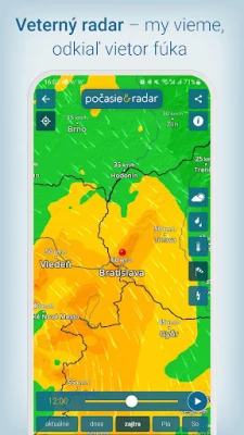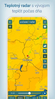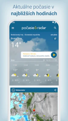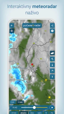 Srdcom služby Počasie & Radar je jedinečný interaktívny meteoradar, ktorý ožíva animovanými mapami zrážok – od dažďa a sneženia po krupobitie. Prehľadne vizualizuje pohyb búrok, bleskovú aktivitu (Bleskradar), veterné podmienky (Veterný radar) a teplotné rozsahy (Teplotný radar) až na tri dni dopredu, s možnosťou podrobného priblíženia. K tomu sa pridávajú aktuálne webkamery priamo na radare. Nezmeškajte žiadnu zmenu vďaka lokálnym notifikáciám a včasným výstrahám pred nepriaznivým počasím, ako sú víchrice, poľadovica či silný dážď. Interaktívne „Počasie v 90 min" poskytuje okamžitý prehľad o najbližšom vývoji.