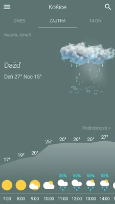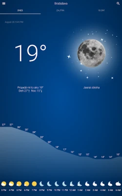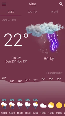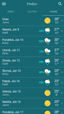 Majte vždy prehľad o aktuálnych poveternostných podmienkach a teplotách pre dnešok, doplnené o prehľadný hodinový graf pre zvyšok dňa a nadchádzajúci večer. S ľahkosťou si overte podrobnú predpoveď na zajtra, vrátane hodinových údajov, aby ste si mohli s istotou naplánovať aktivity. Pre dlhodobý výhľad je k dispozícii rozsiahla 14-dňová predpoveď, ktorá vám poskytne dostatok času na prípravu na akékoľvek zmeny počasia.